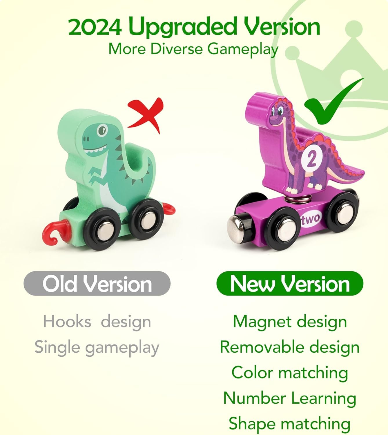 Count and roar! A wooden magnetic train set that combines the magic of dinosaurs with early number learning.